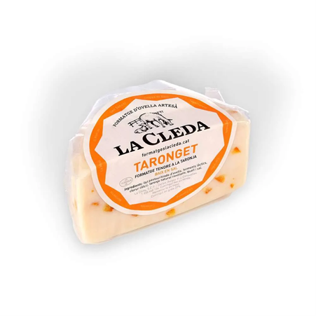De gust suau, textura compacta, lleugerament salat i de color interior blanc intens, amb tacs de taronja confitada.